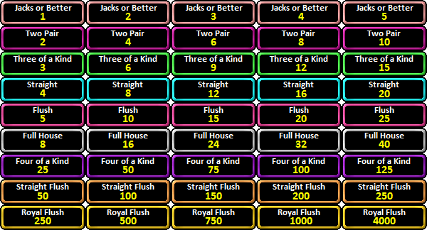 - ستقوم اللعبة بتوزيع خمس أيدي فيديو بوكر من نفس المجموعة، واحدة في كل صف.