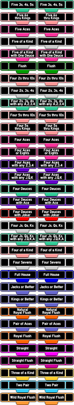 على الرغم من الاختلافات في المدفوعات، فإن لعبة Aces and Eights تخضع لقواعد لعبة الفيديو بوكر العادية.
