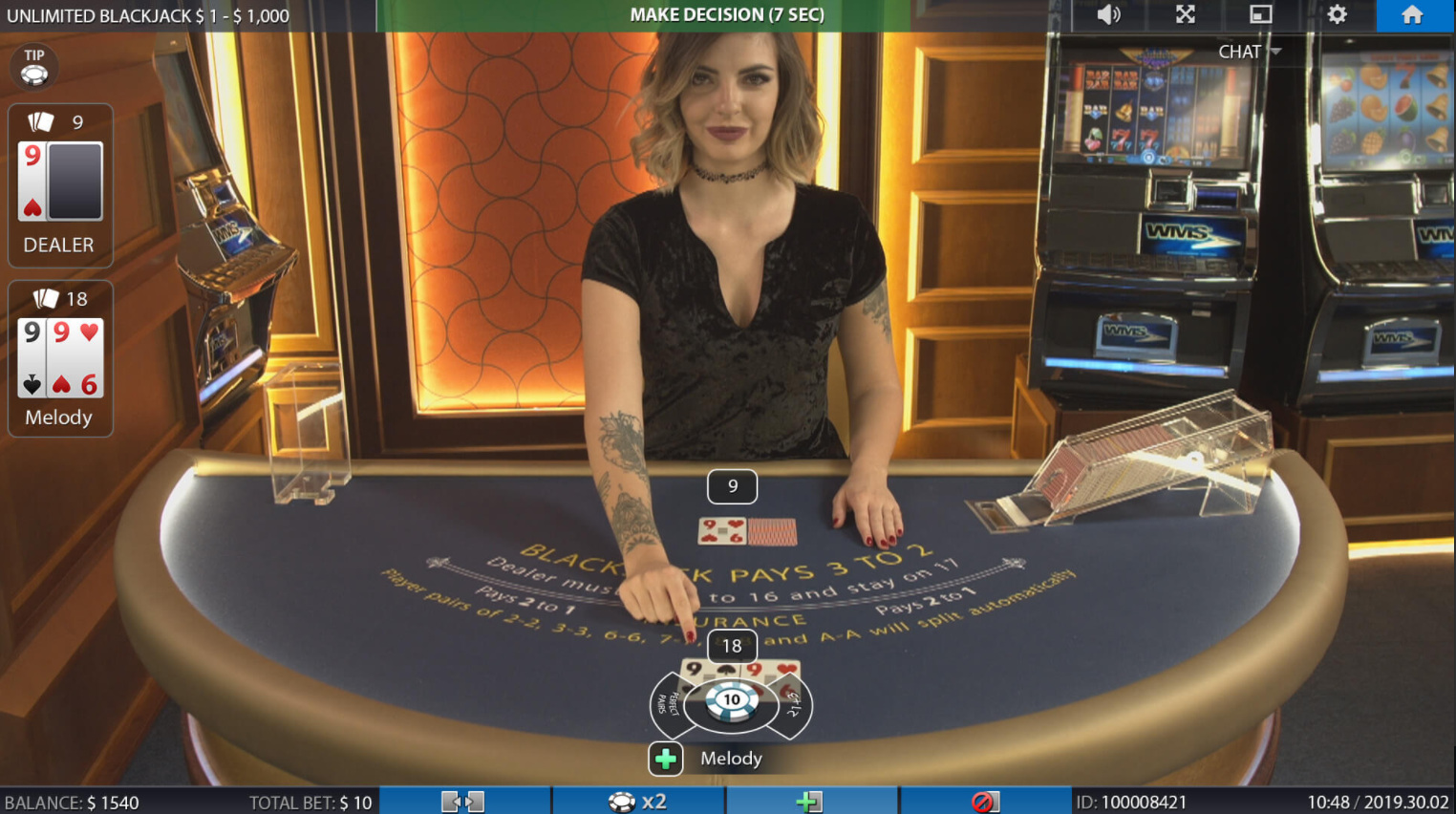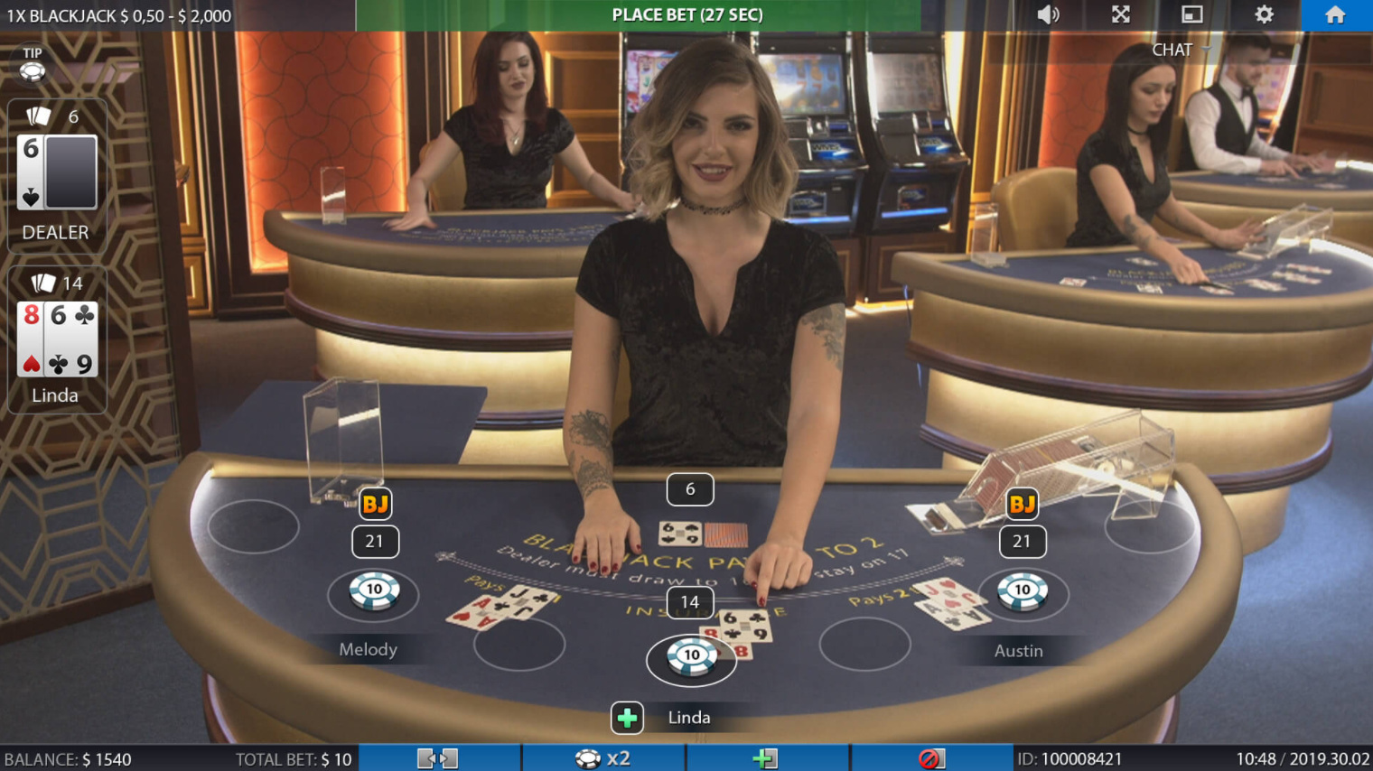 تتوفر أيضًا لعبة بلاك جاك غير محدودة، وهي طريقة تتيح لعدد غير محدود من اللاعبين لعب نفس اليد. أفترض أن قواعد البلاك جاك والرهانات الجانبية هي نفسها الموجودة في لعبة البلاك جاك التقليدية.