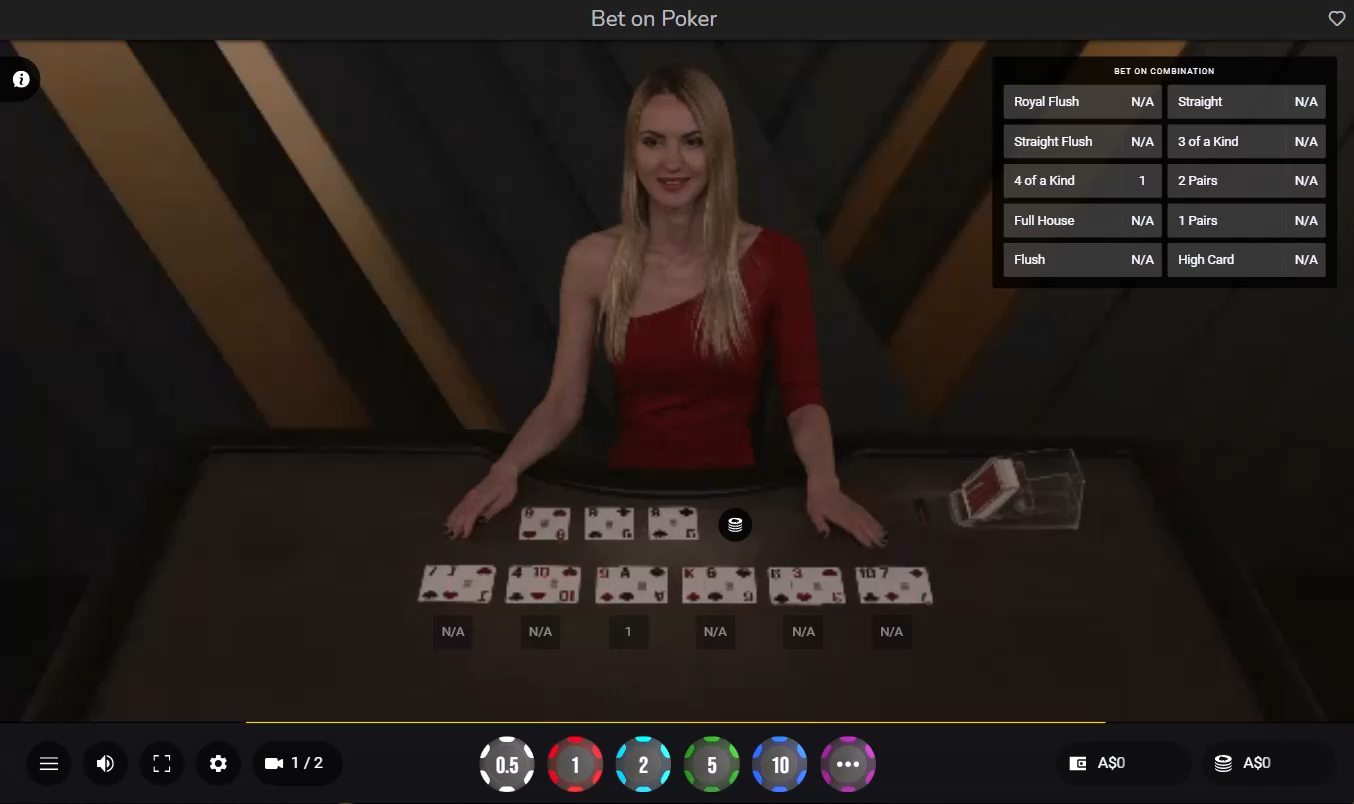أتموسفيرا هي إحدى الشركات القليلة التي تقدم خدمة الرهان على البوكر . في هذه اللعبة، يلعب موزع مباشر من أربع إلى تسع جولات من تكساس هولدم. الهدف هو المراهنة على المركز الفائز واليد الفائزة.