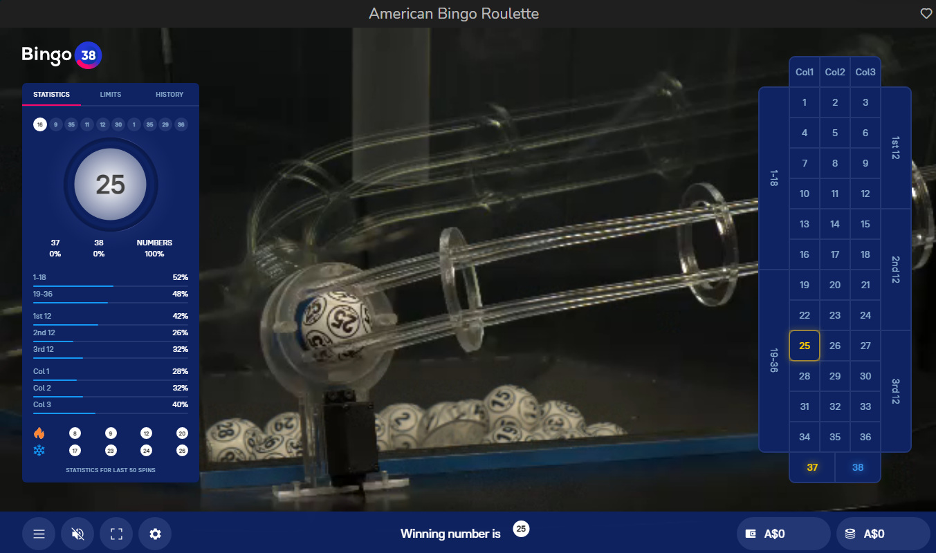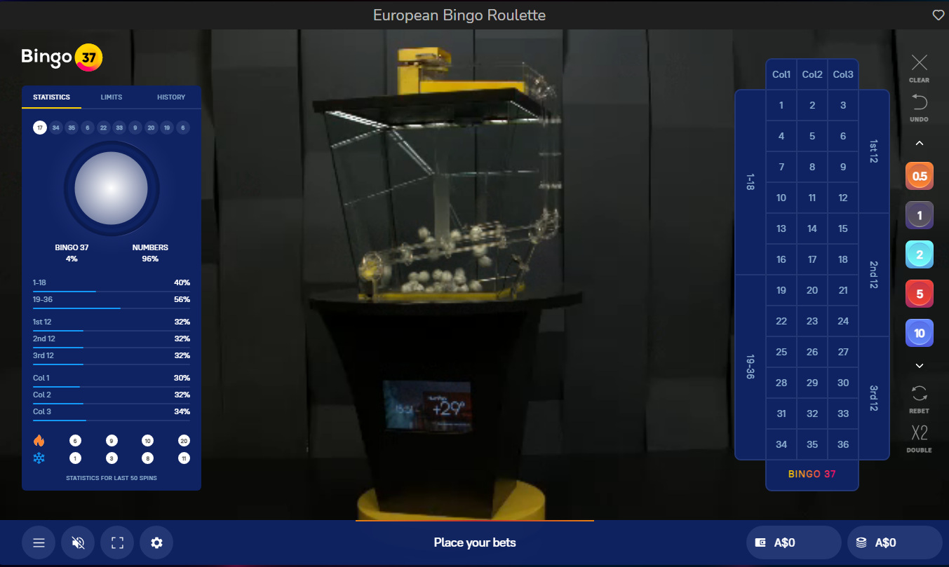 - روليت البنغو الأوروبية - تُلعب بسحب كرة من وعاء آلي يحتوي على 37 كرة. نسبة ربح الكازينو هي 2.70%.