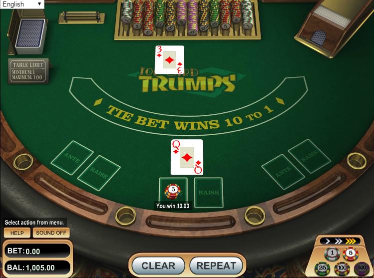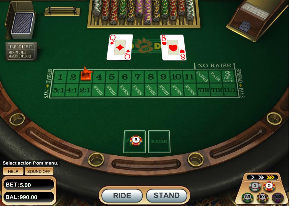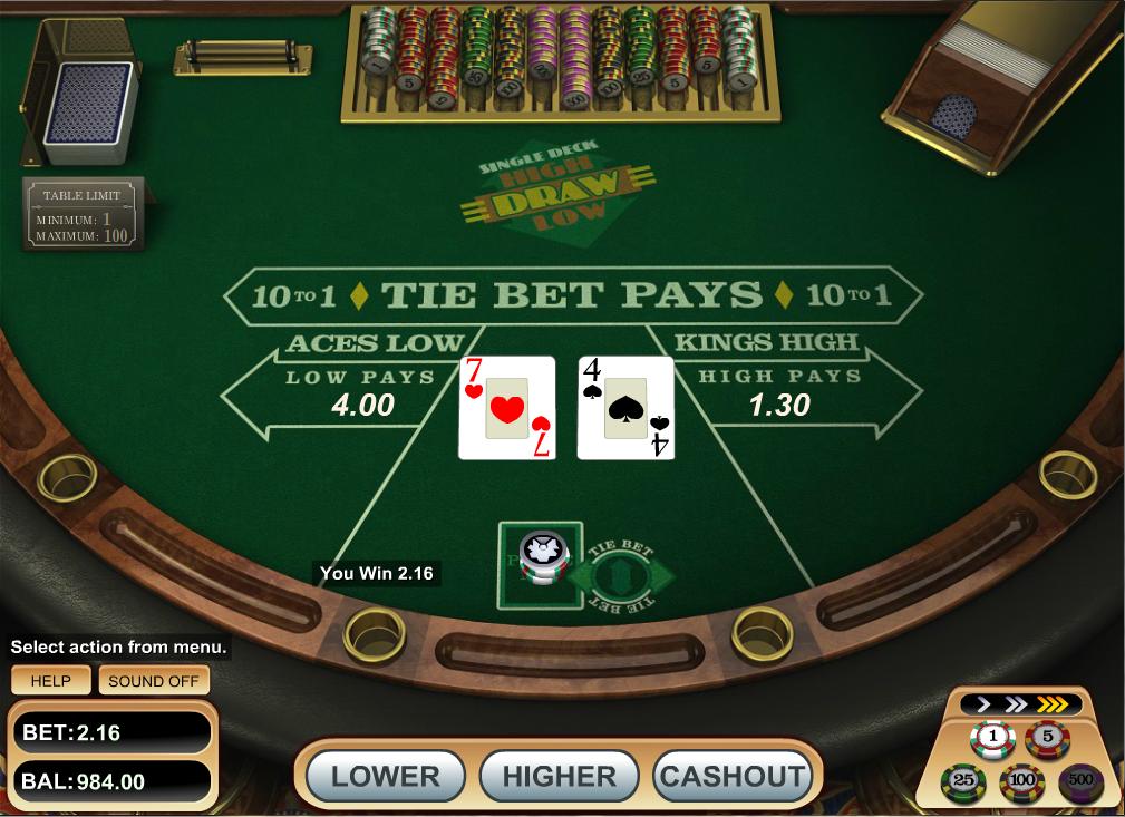 هذه لعبة بسيطة للتنبؤ بالبطاقات، حصرية لشركة Betsoft، على حد علمي. بدلاً من شرحها هنا، يُرجى زيارة صفحتي "Draw Hi Lo" لمزيد من المعلومات. الحد الأدنى هو ربح الكازينو بنسبة 3.93%.
