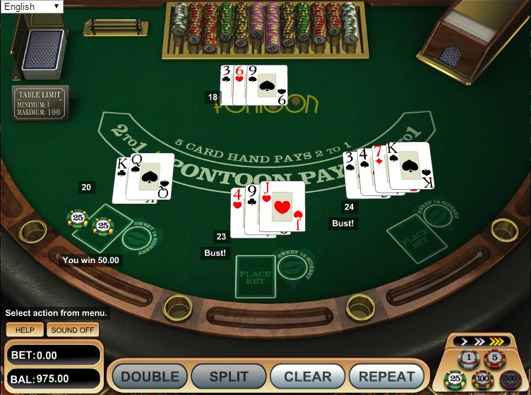 صُممت لعبة بونتون بواسطة شركة Real Time Gaming، وحرصًا منها على مواكبة المنافسة، تبنتها Playtech وMicrogaming وGalewind Software وCryptologic، والآن Gamesys أيضًا. لا ينبغي الخلط بينها وبين لعبة بونتون الأسترالية، التي تُشبه لعبة Spanish 21 في الولايات المتحدة.