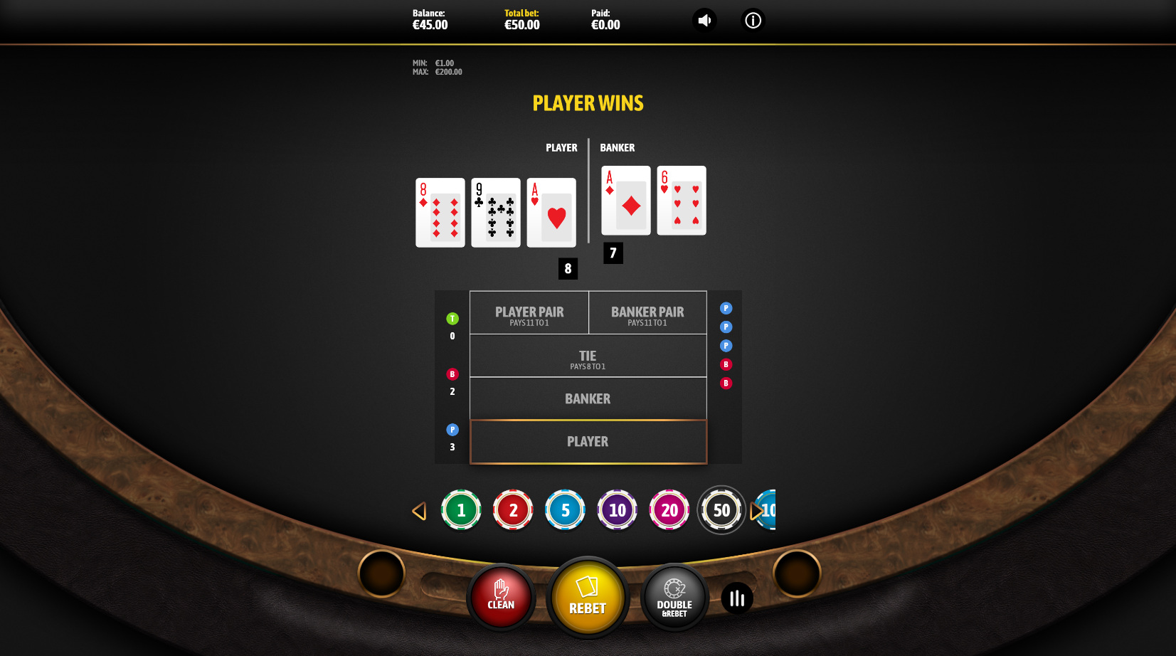تقدم Cubeia لعبة باكارات نادرة بستة مجموعات أوراق. تتضمن اللعبة الرهانات التقليدية الخمسة، كما هو موضح أدناه، مع هامش الكازينو المكون من ستة مجموعات أوراق: