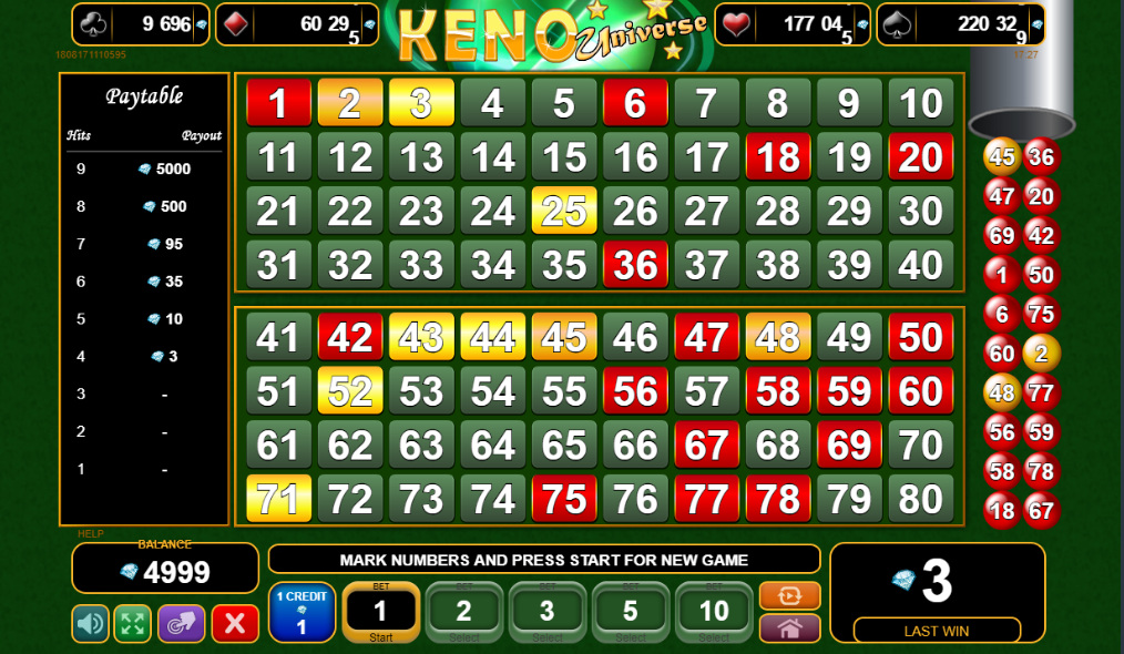 لعبة كينو EGT بسيطة وسريعة. يوضح الجدول التالي جدول الأرباح والاحتمالات. باستثناء الاختيار الثاني، تتراوح العوائد بين 94.15% و94.48% (الاختيار الخامس).