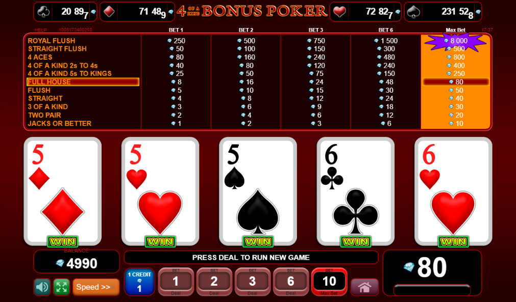 | Bonus Poker | 99.17% | لا | 1-2-3-4-5-8-25-40-80-50-800 | لا |
