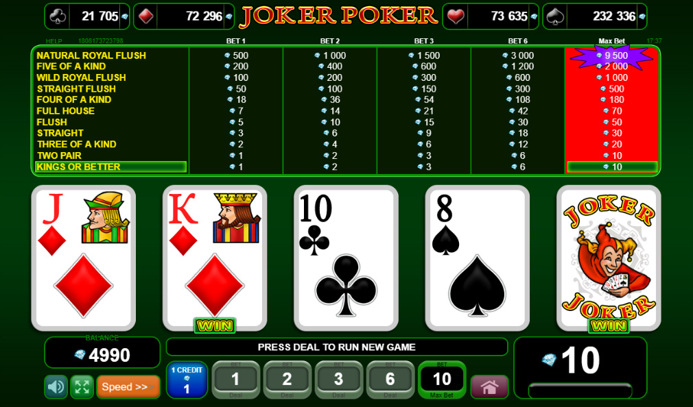 كانت ألعاب الفيديو بوكر الثلاث وقت إجراء هذه المقابلة بسيطة للغاية. اضطررتُ لاستخدام مُحلل الفيديو بوكر الخاص بي للحصول على نتيجة لعبة الجوكر بوكر، التي تدفع 950 دولارًا أمريكيًا لكل رهان (بناءً على رهان 10 عملات) للحصول على رويال فلاش.
