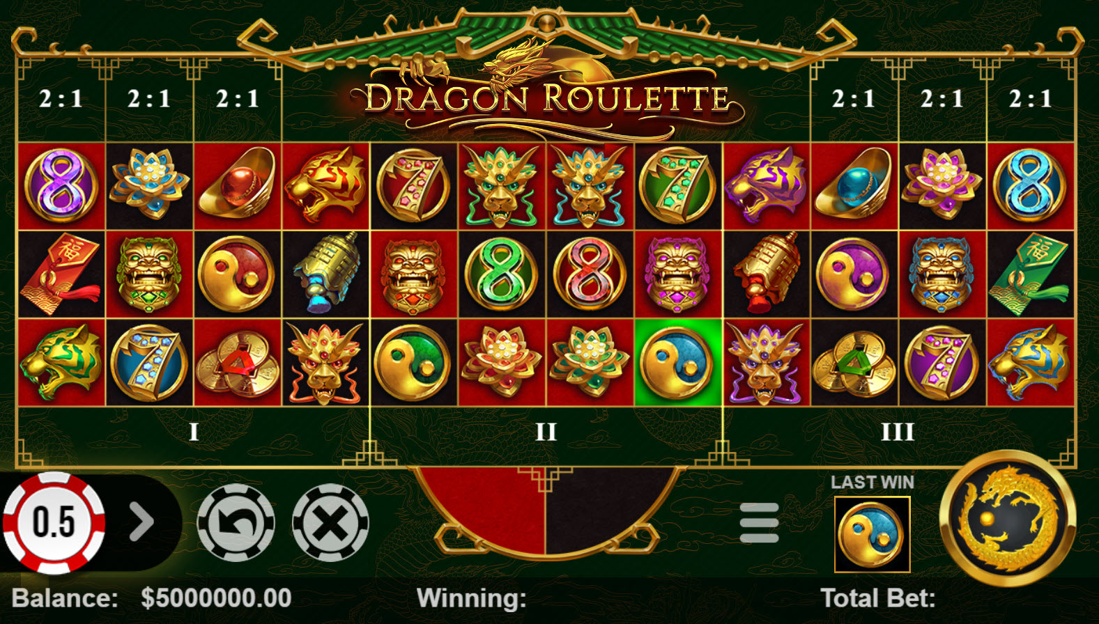 ابتكرت إليسيوم ستوديوز لعبة سلوتس مستوحاة من لعبة الروليت . مستوحاة من إحدى أشهر ألعاب الطاولة ، الروليت ، تُتيح لعبة دراغون روليت للمراهنين خيار المراهنة على الرموز والأيقونات والشخصيات بدلاً من المراهنة على الأرقام. تتميز اللعبة بخيارات تركيبات فريدة، تتيح للمراهنين فرصة اللعب على نمط متوقع، من خلال رهان جانبي حاصل على براءة اختراع يُسمى "دراغون بيت".