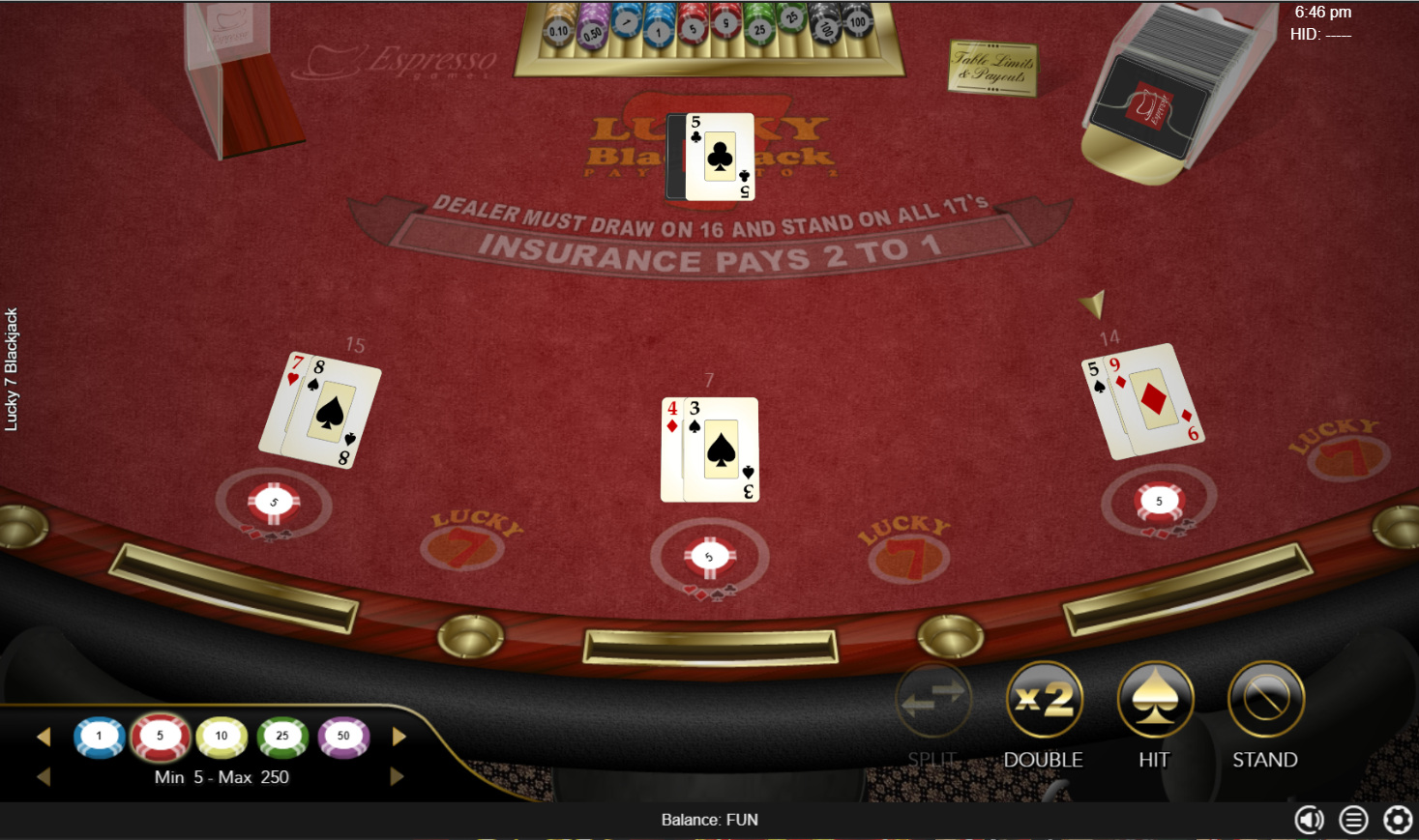 تقدم لعبة Lucky 7 رهانًا جانبيًا يعتمد على عدد أوراق السبعة المتتالية التي يحصل عليها اللاعب. القواعد غير واضحة، لكنني أفترض أنه إذا قسم اللاعب أوراق السبعة، تُحتسب الورقة التالية للحصول على ثلاث أوراق سبع متتالية. كما أفترض أنه إذا حصل اللاعب على ورقتين سبعيتين وكان لدى الموزع بلاك جاك، فلن تُتاح له فرصة الحصول على ورقة سبعية ثالثة. مع ذلك، يُظهر جدول العائد أدناه هامش ربح للكازينو بنسبة 7.83%، بينما يُشير ملف المساعدة إلى أنها 6.75%. مرة أخرى، عليك أن تقرر من تُصدق (أقترح عليك).