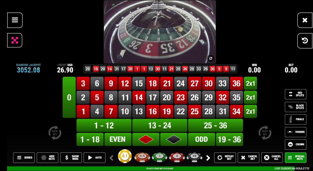 - الروليت الأوروبية الآلية المباشرة — هذا بث كاميرا للعبة الروليت الآلية (بدون موزع مباشر).