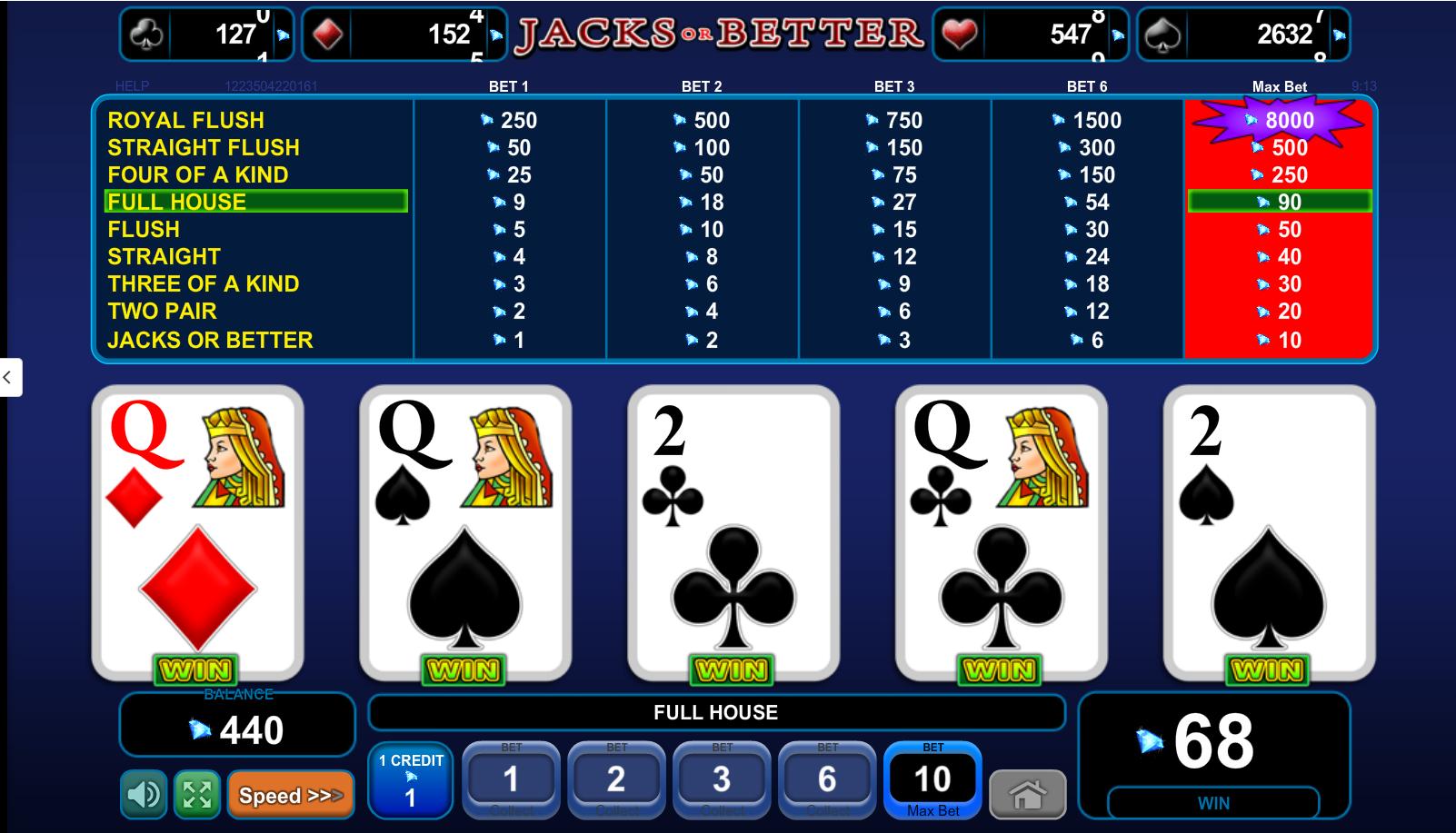 - ميزة التثبيت التلقائي : في البداية، تساءلتُ إن كانت صحيحة. على سبيل المثال، في لعبة "الولد" أو "الأفضل"، كان لديّ بطاقة 6-JA من نفس النوع مع بطاقتين غير مرغوب فيهما. اقترح عليّ الاحتفاظ بالثلاث بطاقات. توقف. عادةً، في لعبة "الولد" أو "الأفضل"، تحتفظ بالبطاقتين مقابل بطاقة رويال في هذه الحالة. مع ذلك، كانت النصيحة صحيحة بالفعل، لأن بطاقة رويال تدفع 400 فقط، مما يُضعف الحافز لاختيار واحدة.