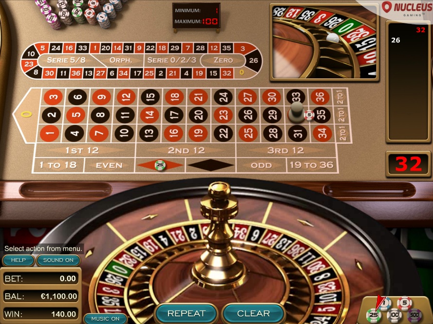 يقدم Nucleus ثلاثة إصدارات من الروليت: إصداران بصفر واحد وإصدار بصفر مزدوج. أنصح باللعب على عجلات الصفر الواحد فقط.