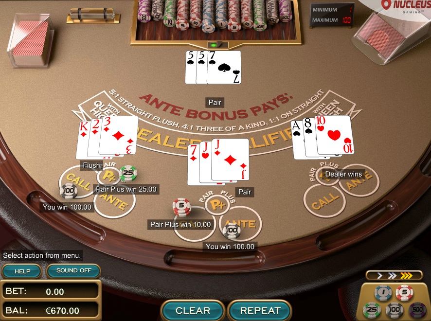 تُتبع قواعد باي غاو بوكر القياسية. يُعجبني دائمًا وجود زرّ لترتيب البطاقات في الكازينوهات الإلكترونية، أو على الأقل فرزها، لكن نوكليوس لا يفعل أيًّا منهما. على الأقل، من المستحيل أن تُخطئ يدك.