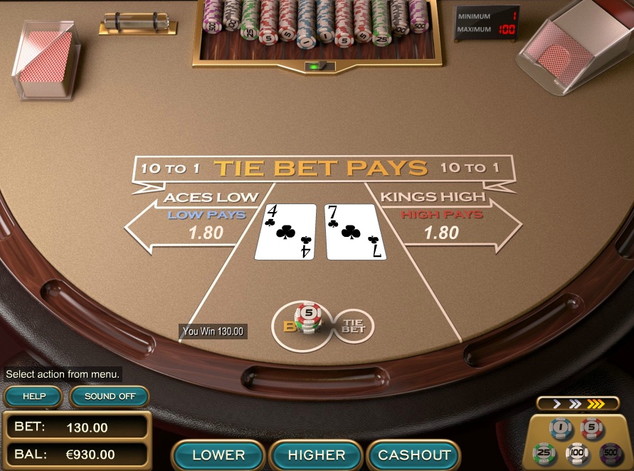 هذه لعبة بسيطة للتنبؤ بالبطاقات. على حد علمي، متاحة فقط لشركتي Betsoft وNucleus. بدلاً من شرحها هنا، يُرجى زيارة صفحتي "Draw Hi Lo" لمزيد من المعلومات. الحد الأدنى هو ربح الكازينو بنسبة 3.93%.