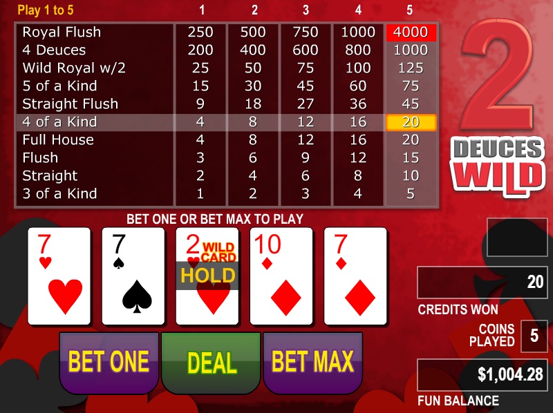 | Deuces Wild | 98.91% | لا | 1-2-3-4-4-9-15-25-200-800 | لا |