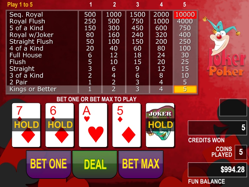 | Joker Poker (kings or better) | 98.47% | لا | 1-1-2-3-5-6-20-50-80-150-800-2000 | لا |