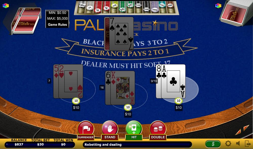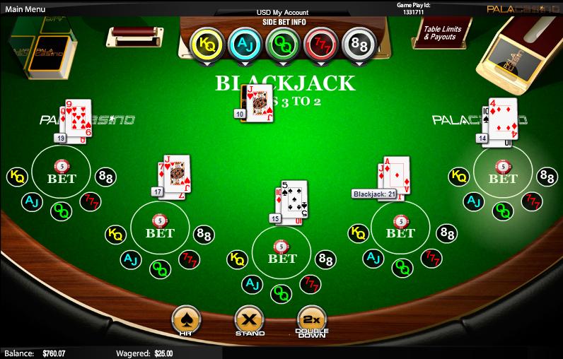 تتوفر أربع ألعاب بلاك جاك. أفضل احتمالات الفوز موجودة في لعبة "الرهان الجانبي"، التي تتميز بأفضل القواعد وخمسة رهانات جانبية مختلفة. لا أنصح أبدًا بالمراهنة بالرهانات الجانبية في أي لعبة، ولكن إذا كنت مهتمًا بمعرفة المزيد عن رهانات بلاك جاك الجانبية في Pala، فإليك بعض الروابط لصفحات خاصة بها: