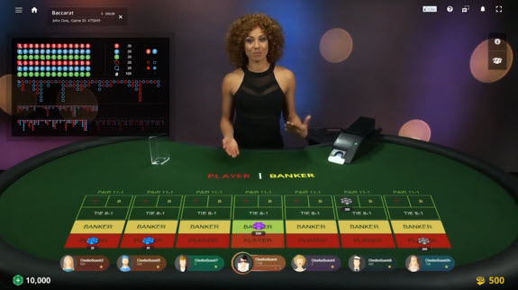 يبدو أن لعبة الباكارات تتبع القواعد القياسية، مع عمولة ٥٪ على رهان الموزع. تُعرض الرهانات الخمسة المعتادة، بما في ذلك رهان اللاعب وزوج الموزع.
