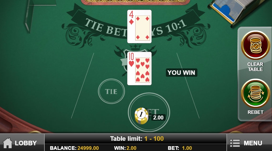 يتم اتباع القواعد القياسية، بما في ذلك احتمالات ضئيلة (٨ إلى ١) لرهان التعادل وستة رزم أوراق. هذا يجعل هامش الكازينو في كل رهان كما يلي: