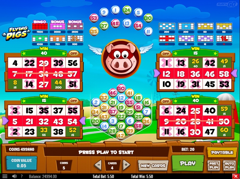 هناك لعبتا بنغو متشابهتان. تُلعب كلتاهما ببطاقات ٣ × ٥. تتيح كلتاهما شراء كرات إضافية كثيرة إذا كنت على بُعد كرة واحدة من فوز كبير. كما تتضمنان لعبة إضافية لتغطية نمط صعب. تشير ملفات المساعدة إلى أن عائد اللعبتين يبلغ ٩٦٪.