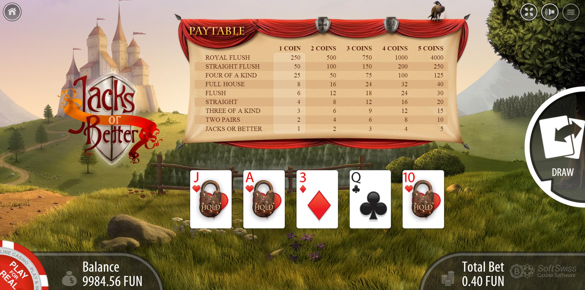 | Jacks or Better | 98.39% | لا | لا | 1-2-3-4-6-8-25-50-800 | لا |