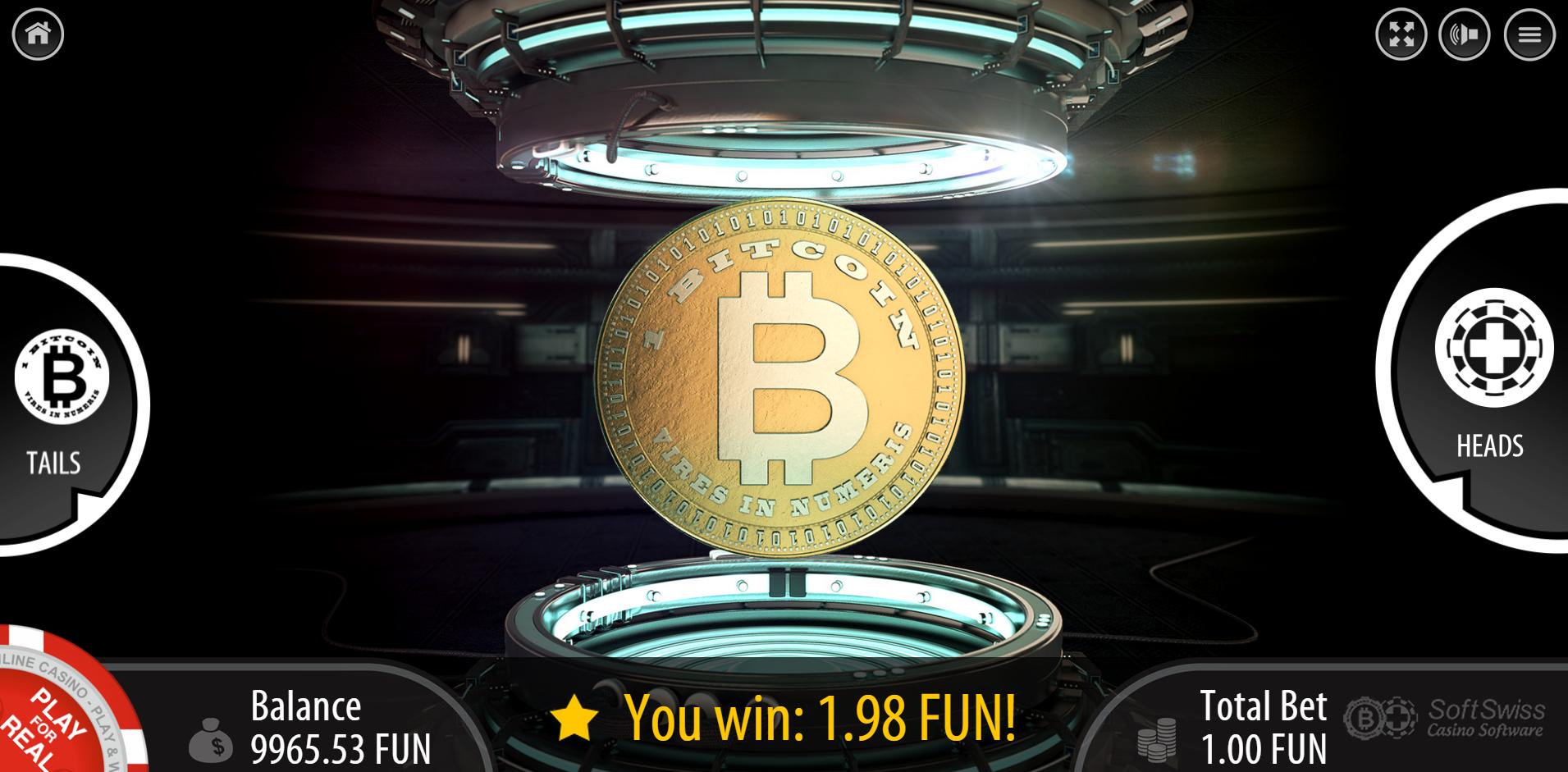 هذه لعبة بسيطة تعتمد على رمي عملة بيتكوين. تُدفع قيمة الفوز ١.٩٨ لكل ربح، مع هامش ربح للكازينو بنسبة ١٪. لمزيد من التفاصيل، وليس هناك الكثير لأقوله، يُرجى مراجعة قسمي "الصورة أو الكتابة" والاطلاع على قواعد SOFTSWISS.