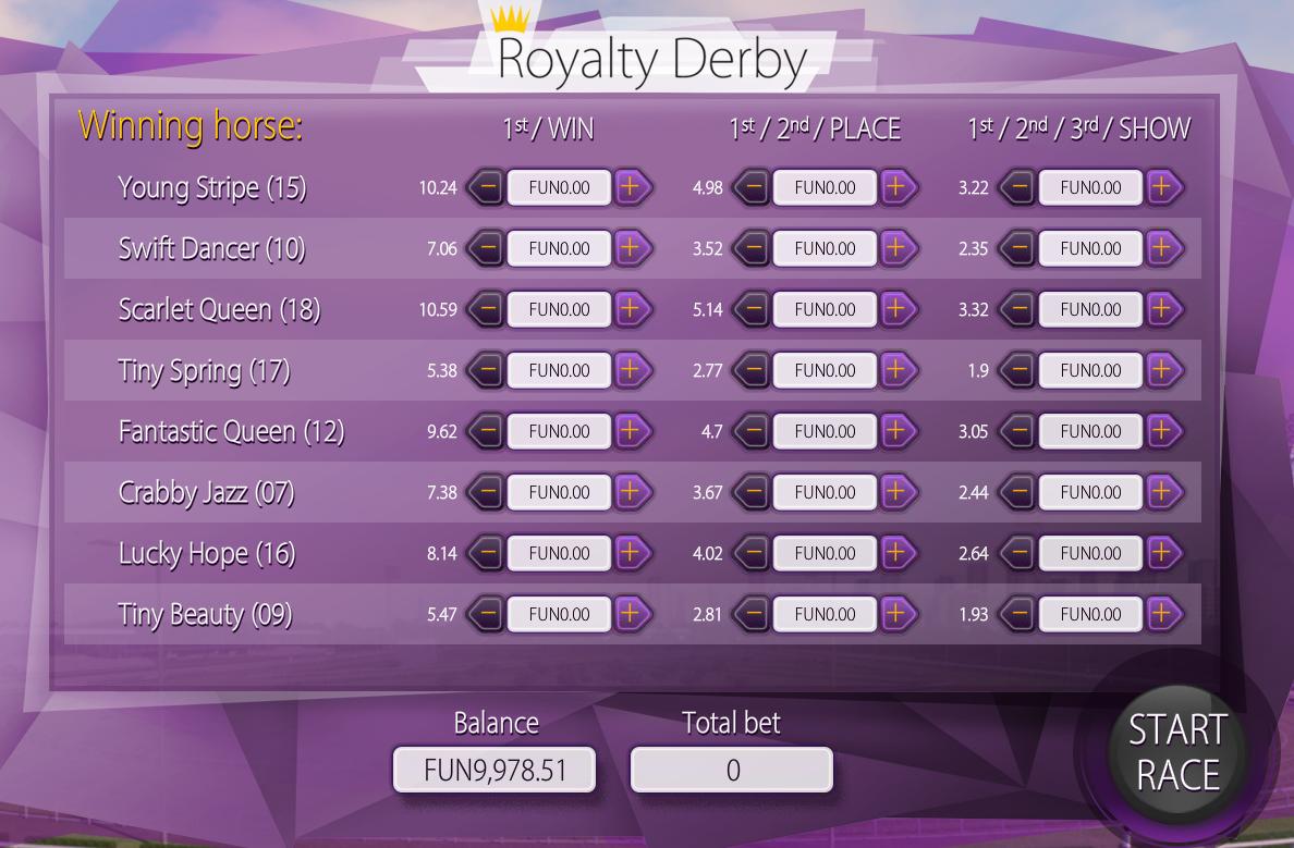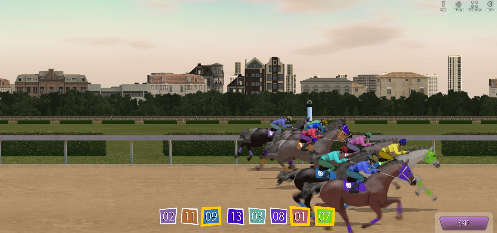 هذه لعبة سباق خيول بسيطة ومُصممة بشكل رائع. هناك ثمانية خيول، ويمكن للاعب المراهنة على فوز أي منها أو مركزه أو فوزه.
