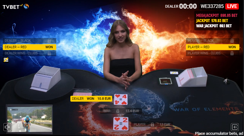 لعبة "حرب العناصر" هي نسخة مُحسّنة من لعبة "حرب الكازينو". تُستخدم فيها مجموعة أوراق لعب واحدة. يمكن للاعب المراهنة على الجانب الفائز، بالإضافة إلى مجموعة من الرهانات الجانبية. تُحدّث الاحتمالات ديناميكيًا مع مرور الموزع في صندوق اللعب. تبدو اللعبة مشابهة جدًا للعبة "حرب الرهانات" .