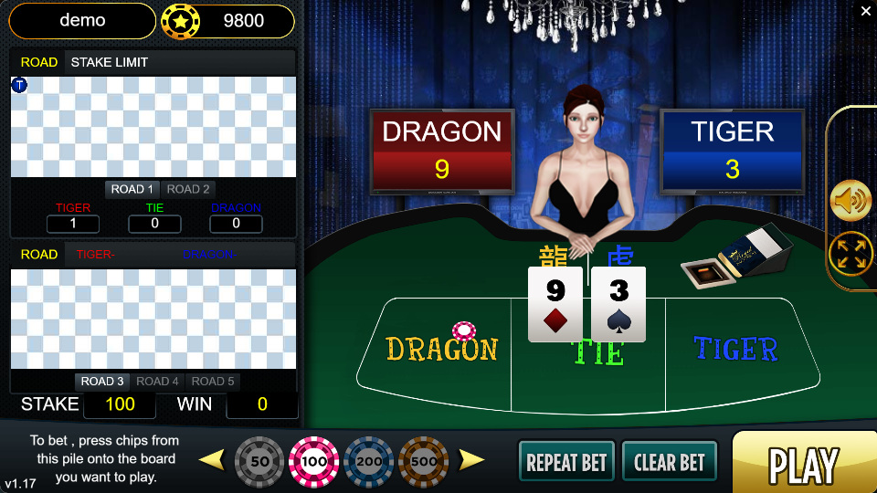 لعبة التنين النمر بطيئةٌ للغاية كالباكارا. كما أنها تتطلب من اللاعب قلب ورقة، إلا إذا راهن على التعادل فقط. وكالعادة، يدفعون احتمالاتٍ ضئيلةً جدًا تبلغ 8 إلى 1 في حالة التعادل. وكما هو الحال في الباكارا، يقدمون لوحة نتائج تحتوي على جميع "الطرق" الخمسة. إليكم هامش الكازينو للرهانات الثلاثة المعروضة: