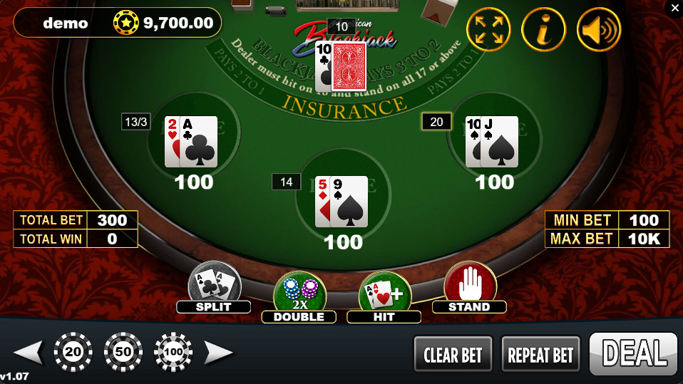 | American Blackjack | 1.5 | يقف | نعم | أي 2 | 1 | لا | لا | نعم | لا | 99.60% | 4 | لا |
